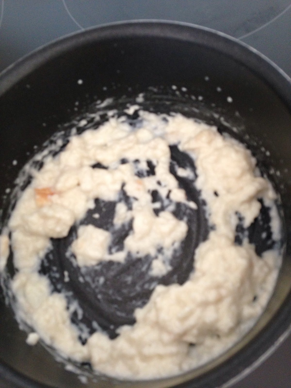 2. Cocer la miga de pan con la leche. Añadir al rape picado y al huevo. Salpimentar.